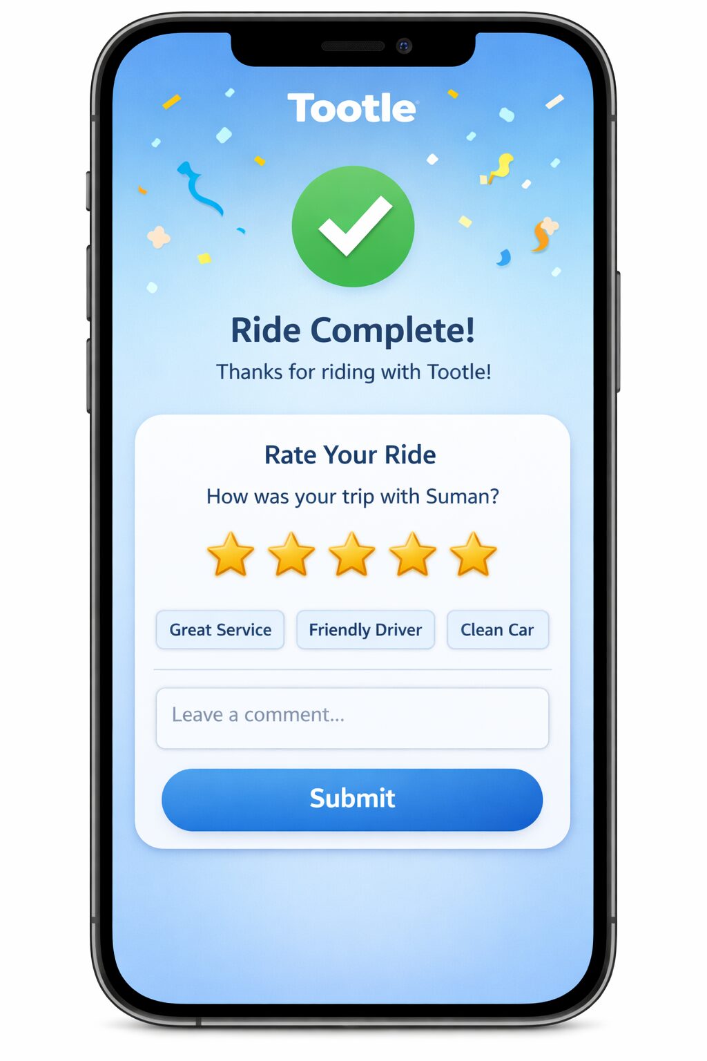 Tootle is a ride-sharing and transportation mobile app designed to make everyday travel simpler, smarter, and more intuitive.